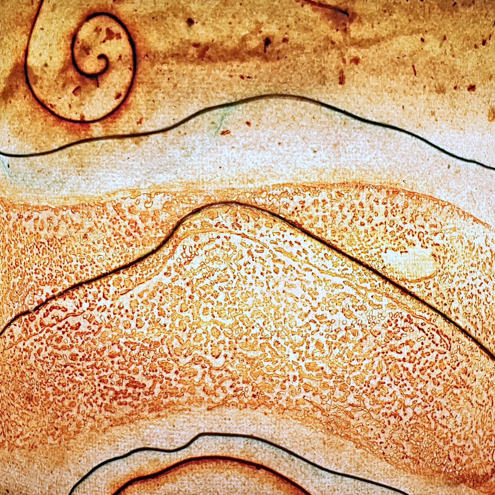Landscape inspired image printed on handmade recycled paper by artist Catherine Hewitt