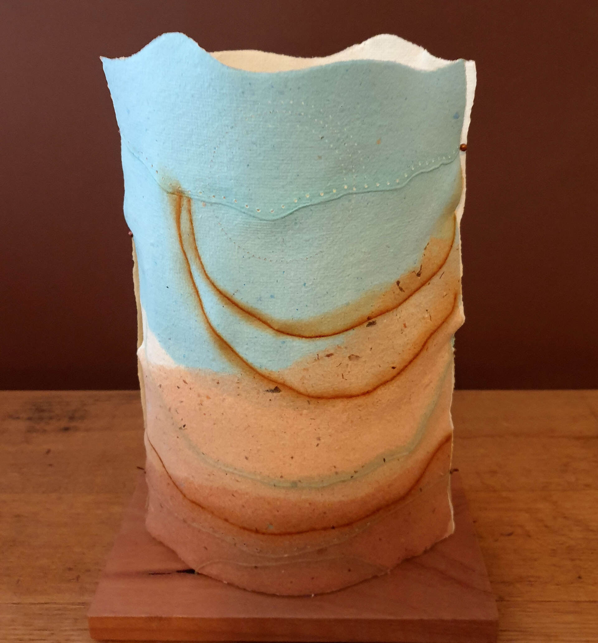 Handmade recycled paper Copper and steel wire Wooden base – Queensland Maple LED globe 3w 240V Measurements given include the base