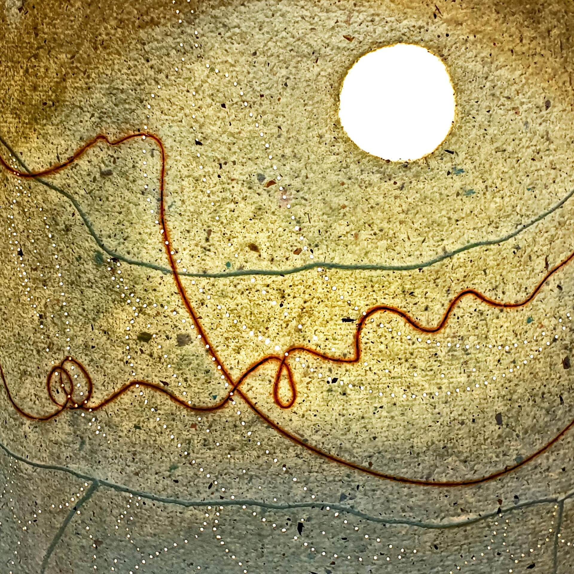 Landscape inspired image printed on handmade recycled paper by artist Catherine Hewitt