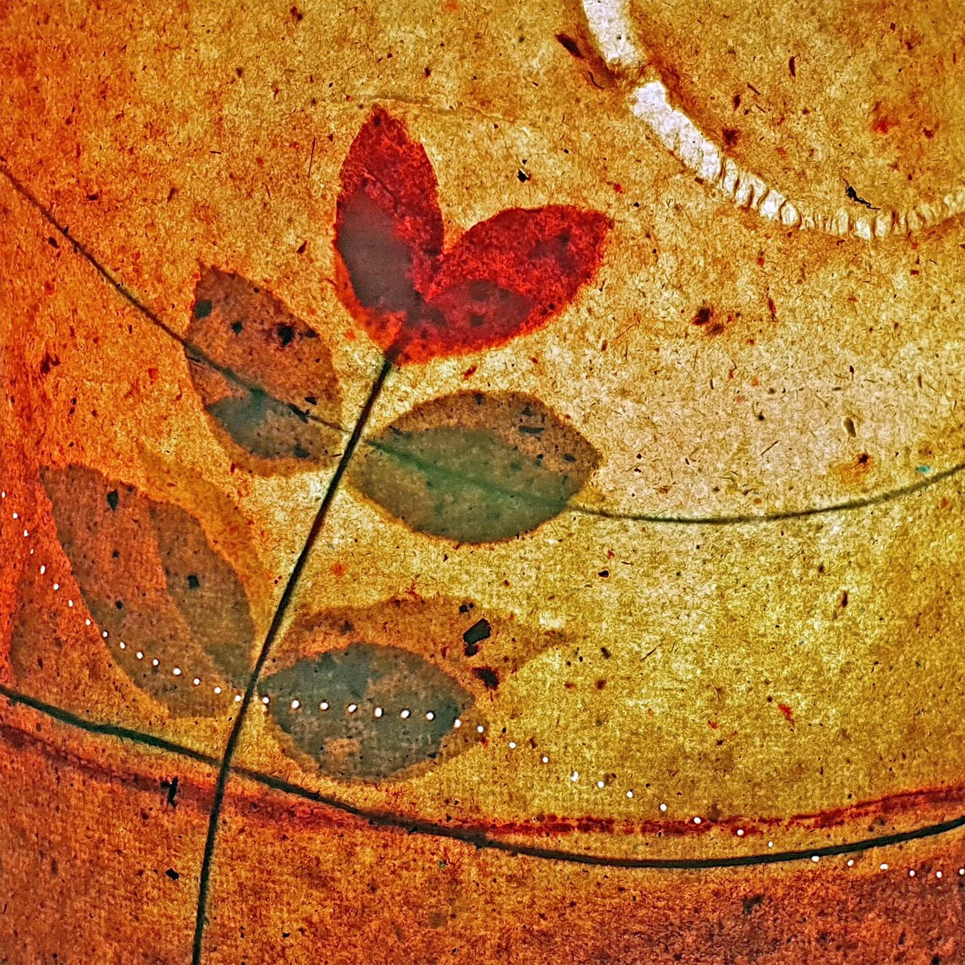 Landscape inspired image printed on handmade recycled paper by artist Catherine Hewitt