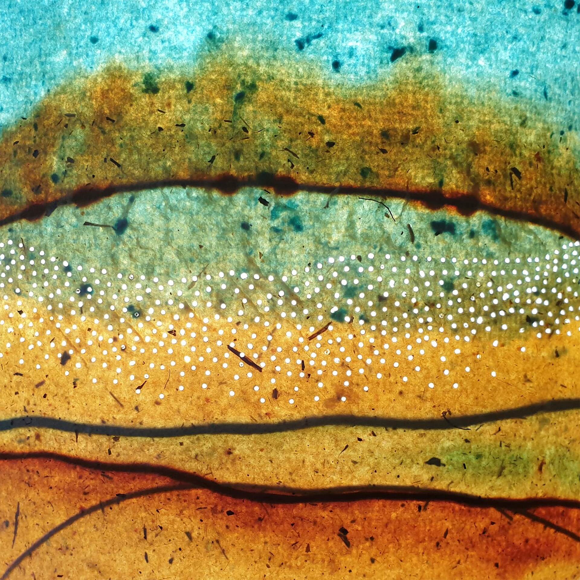 Landscape inspired image printed on handmade recycled paper by artist Catherine Hewitt