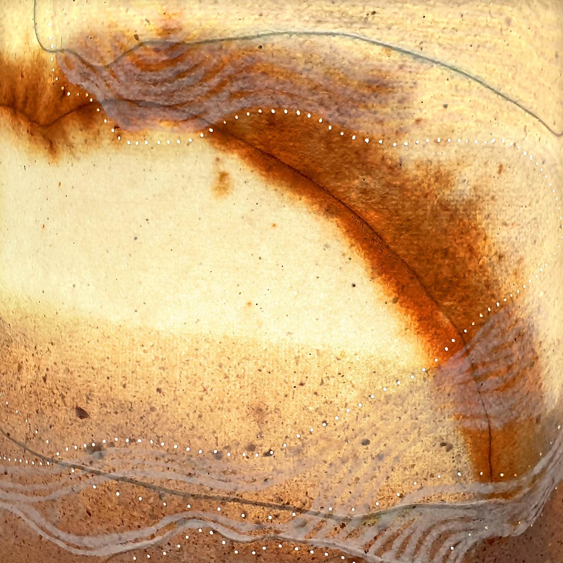 Landscape inspired image printed on handmade recycled paper by artist Catherine Hewitt